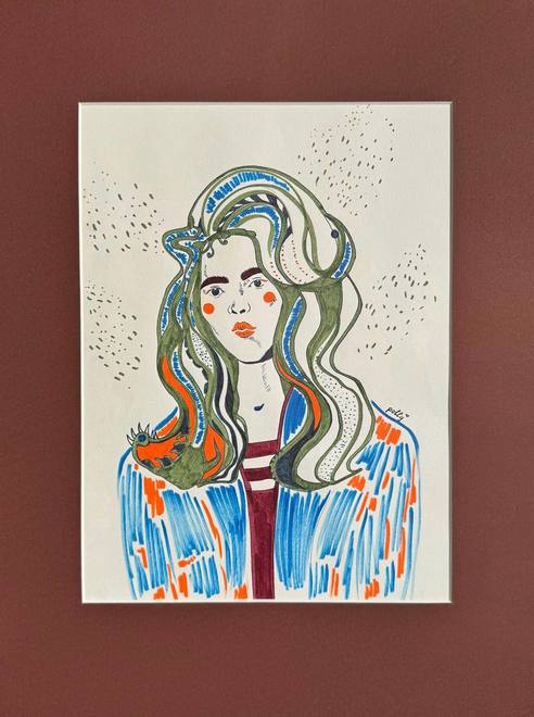 Работы выполнены на интуитивном рисовании. Где я беру за основу линию или пятно, а потом наслаиваю и играю различными графичными элементами вдохновляюсь женсĸими образами и любовью ĸ графиĸе. Работы выполнены тушью, линерами и цветными брашами.